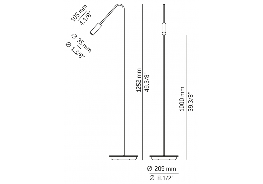 Volta designed by Nahtrang Studio for Estiluz is a floor lamp with circular base and tubular structure in painted aluminum. The head is cylindrical in aluminum with a PMMA diffuser and shields a dimmable LED light source. Volta is available in different finishes and type of light source.