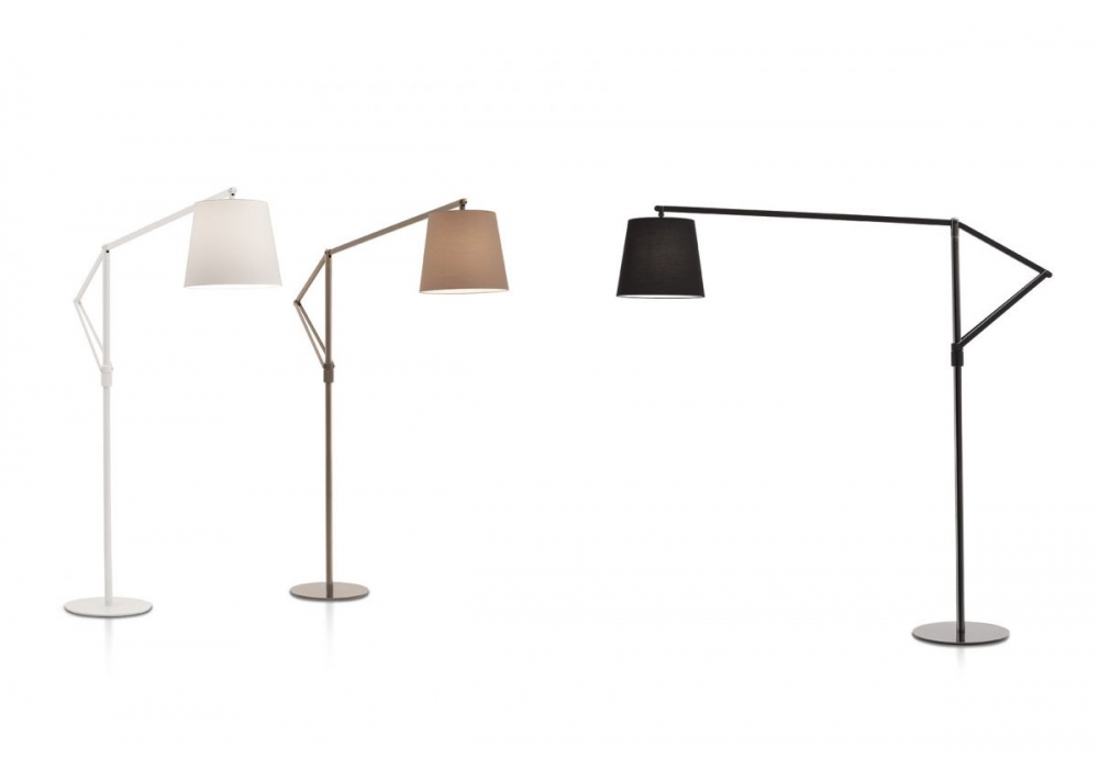 Cloe designed by Pocci & Dondoli for Bontempi is a steel floor lamp with fabric covered lampshade available in different finishes. Bulb not included.