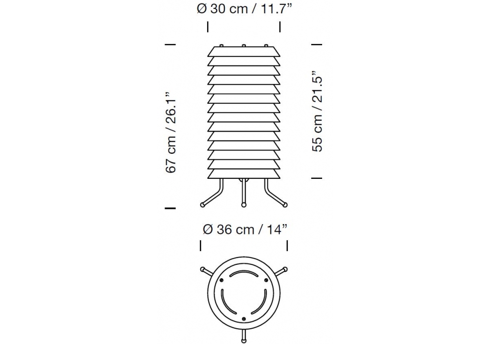 Maija 30 designed by Ilmari Tapiovaara for Santa&Cole is a floor lamp with a matt white metal shade and matt brass legs.