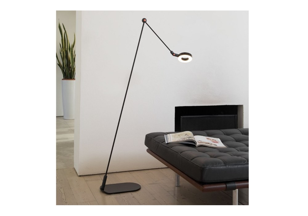 L'Amica designed by Emiliana Martinelli for Martinelli Luce is a floor lamp structured in metal with details in resin painted in different finishes. The arm is articulated and adopts an adjustable head with methacrylate diffuser. The light source used is integrated LED with cable dimmer.