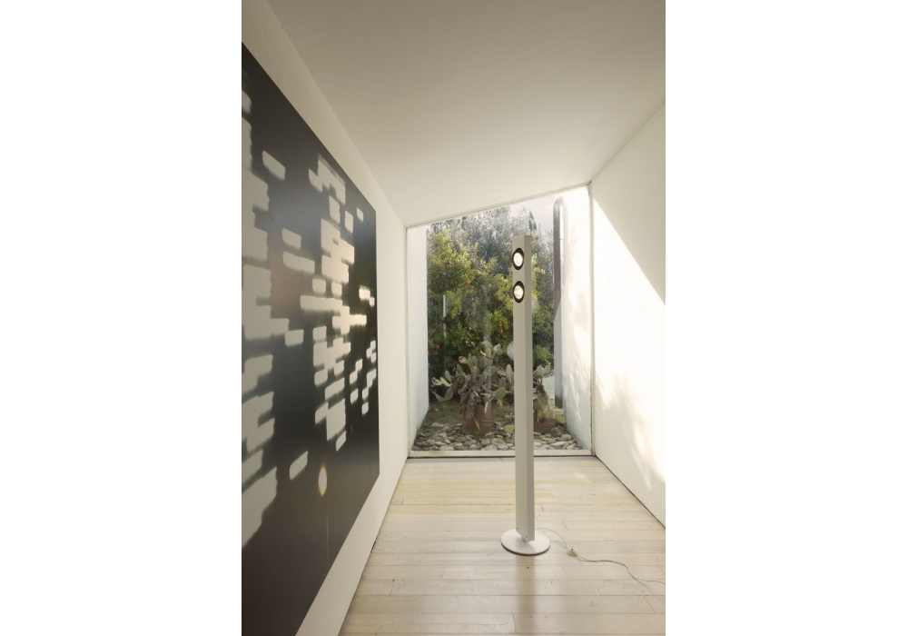 Brick designed by Emiliana Martinelli for Martinelli Luce is a floor lamp with circular base and quadrangular lamp body in painted aluminum. The spotlights are independently adjustable and adopt an integrated LED light source. Brick is available in different versions of light beam.