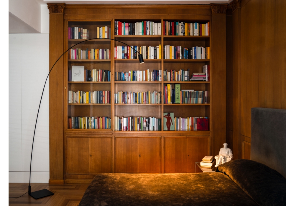 Fox designed by Bernhard Osann for Nemo is a floor lamp with a square base and a painted steel structure. The cylindrical diffuser uses a dimmable LED light source.