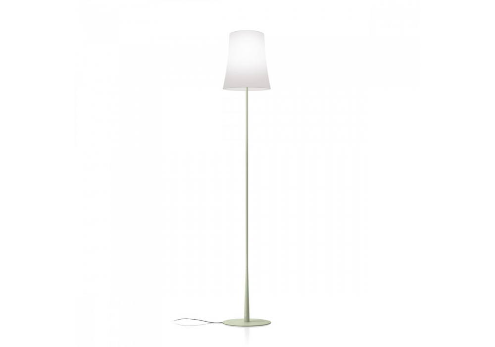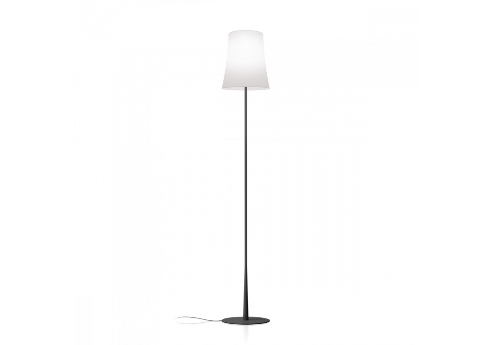 Birdie Easy designed by Ludovica & Roberto Palomba for Foscarini is a floor lamp with supporting structure in liquid painted metal. The diffuser is circular in white polycarbonate and shields a LED or halogen light source with E27 socket. The power cable is made of transparent plastic material. Birdie Easy is available in different finishes.