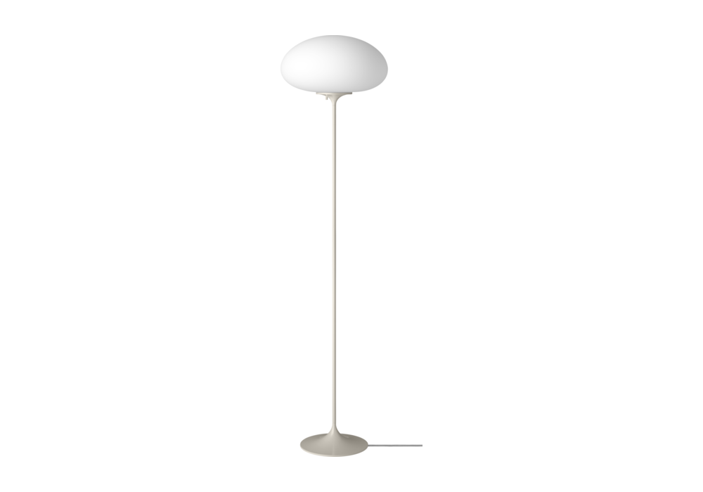 Stemlite designed by Bill Curry for Gubi is a floor lamp composed of metal base and frosted glass shade.