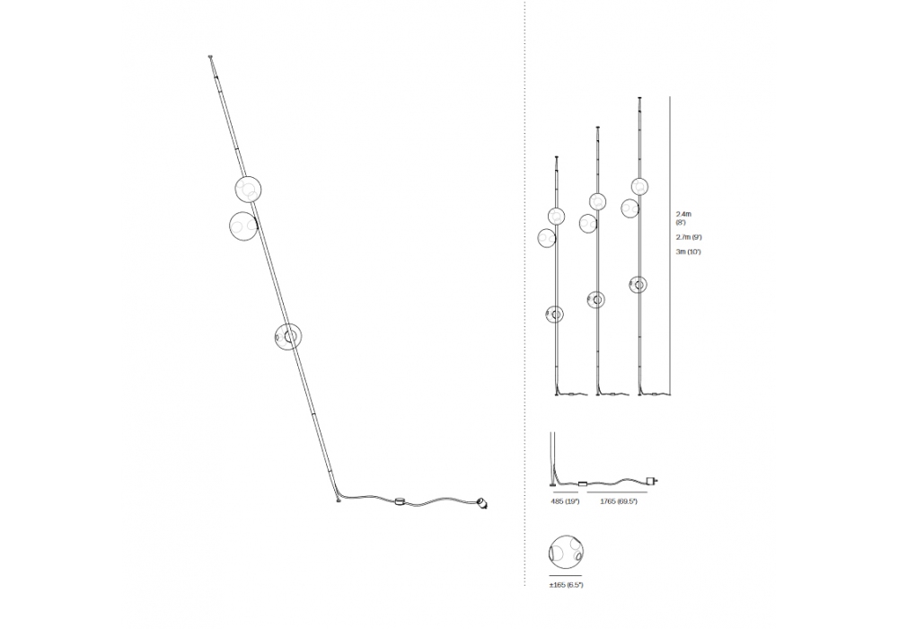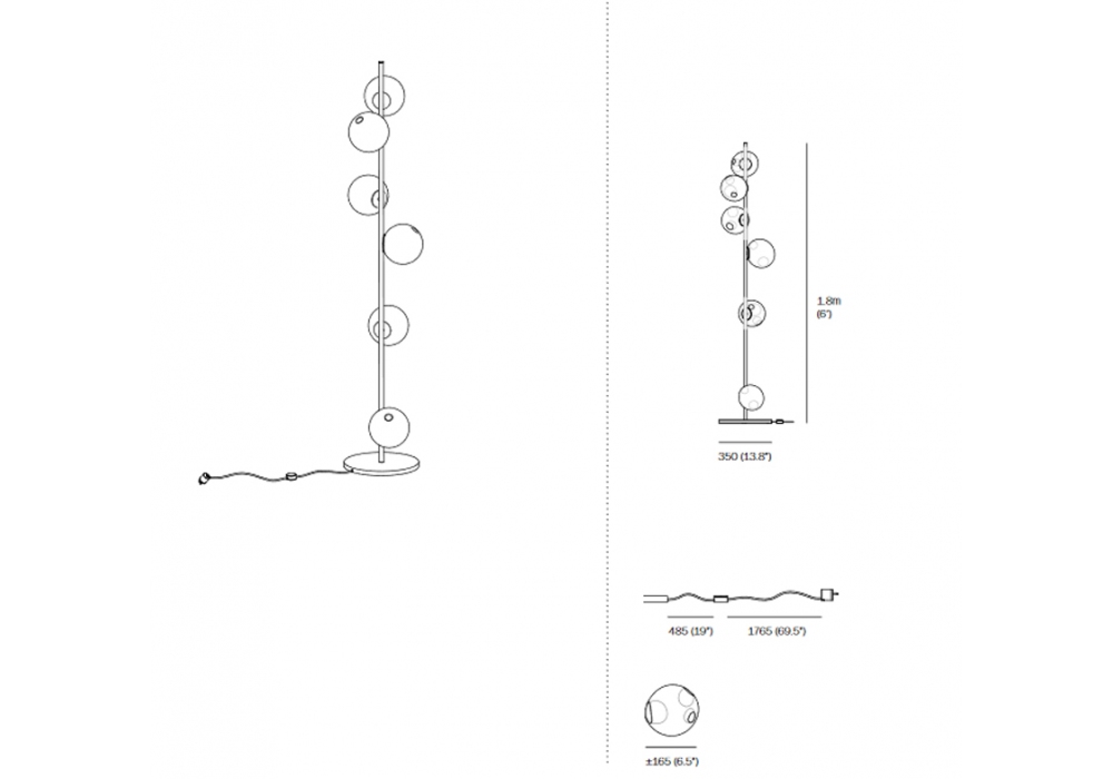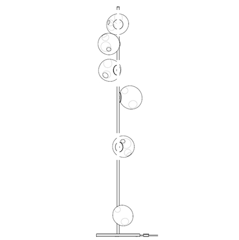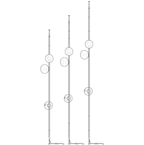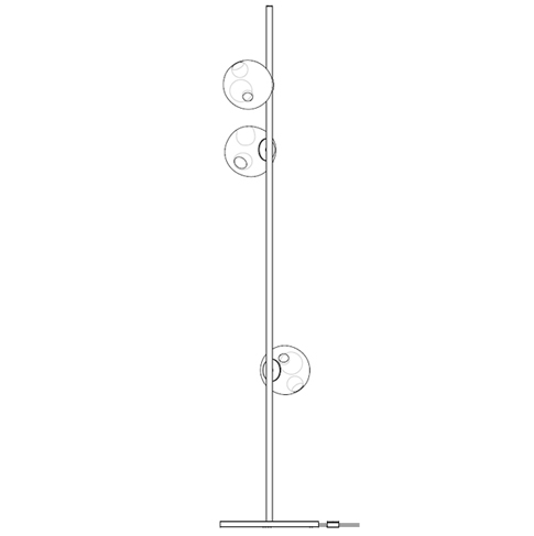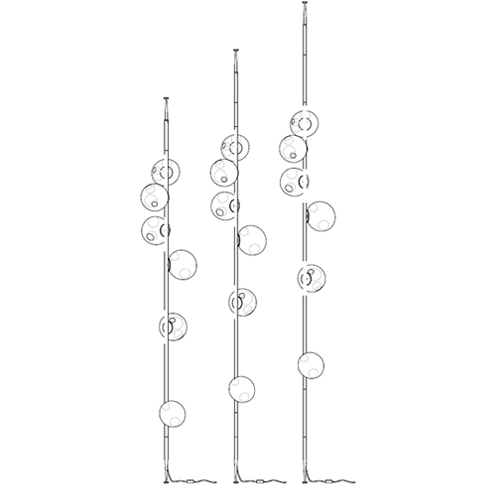 28 Stem designed by Omer Arbel for Bocci is a floor lamp with tubular structure and circular brass base available in two different finishes, brass or matt black. The diffusers are in blown glass with LED light source. 28 Stem is available in different versions and sizes.