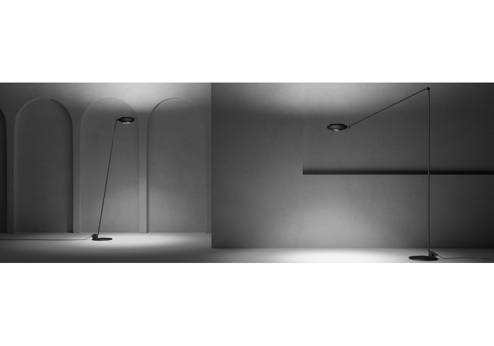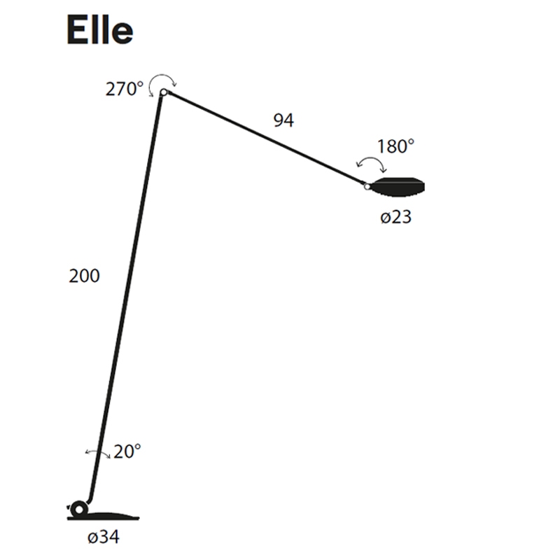 Elle designed by Tommaso Cimini for Lumina is a floor lamp with structure in aluminum and steel with movable arms and circular base. The diffuser is vertically adjustable by 180 ° and adopts a halogen light source. Elle is available in different finishes and models.