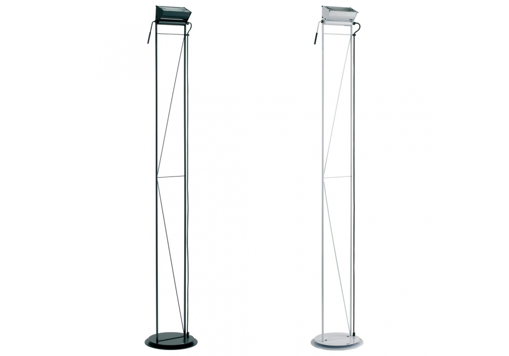 Opus designed by Walter Monici for Lumina is a floor lamp structured by a trellis system and a circular metal base in different finishes. The diffuser is quadrangular in shape in metal with an ergonomic handle to direct the light beam to your liking thanks to a rotation of 240 °. The light source used is of the dimmable halogen type (included).