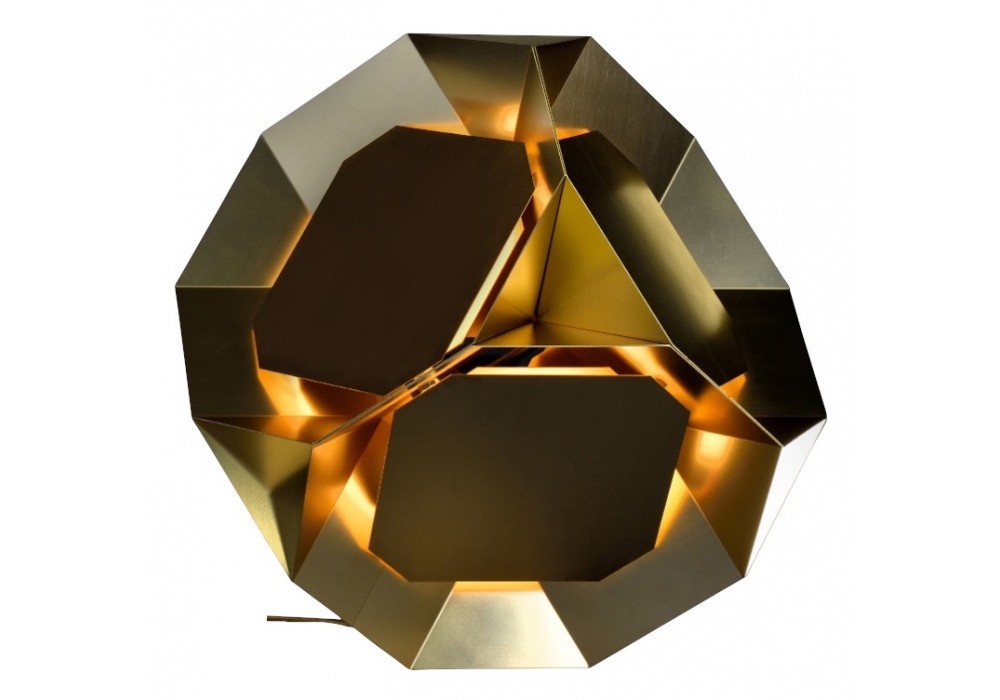 Pylite Cubeform designed by Dan Treacy for Rakumba is a floor or table lamp available in powder coated steel or in satin brass.