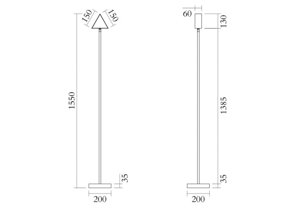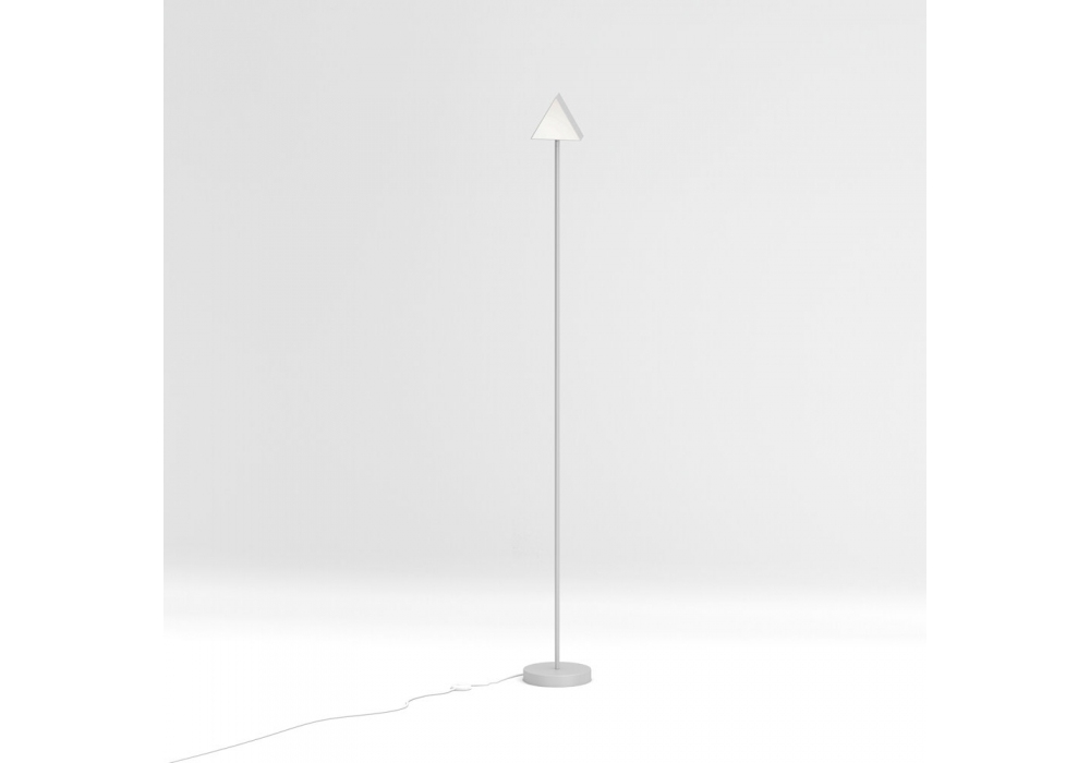 Triangle Box designed by Atelier Areti is a floor lamp made of powder coated metal or brushed brass and acrylic panels.