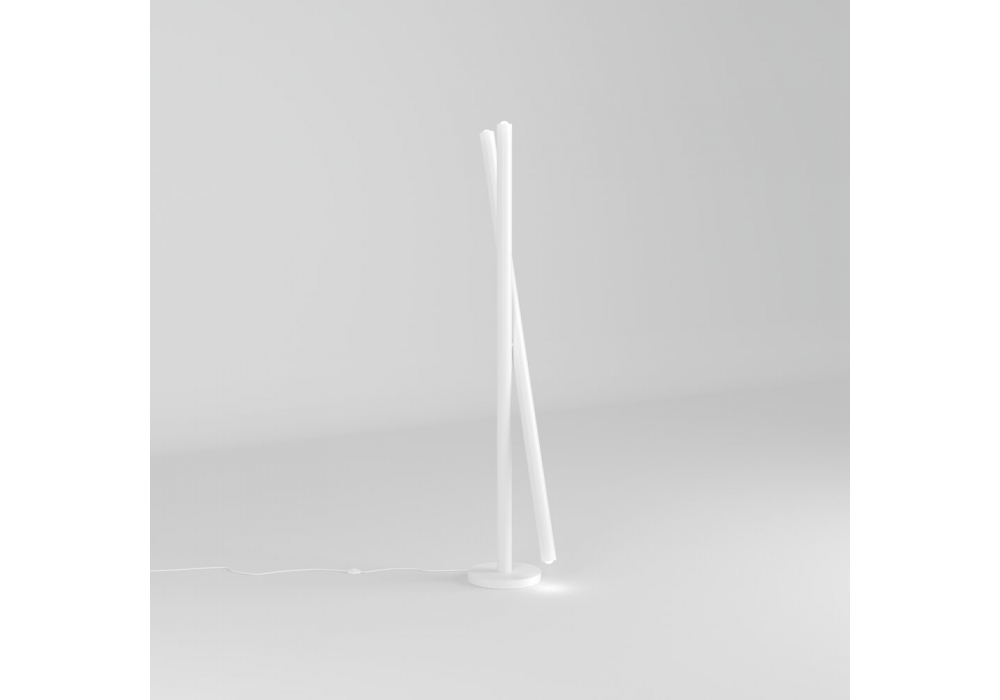 Rotation designed by Atelier Areti is a floor lamp made of white or black painted metal and glass lenses.