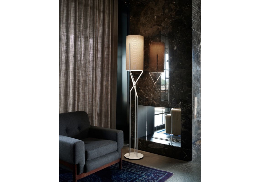 Aura designed by Ilaria Marelli for Slide is a floor lamp in painted iron, the lampshade is in waterproof fabric. Available in different finishes for the lampshade and the stem.