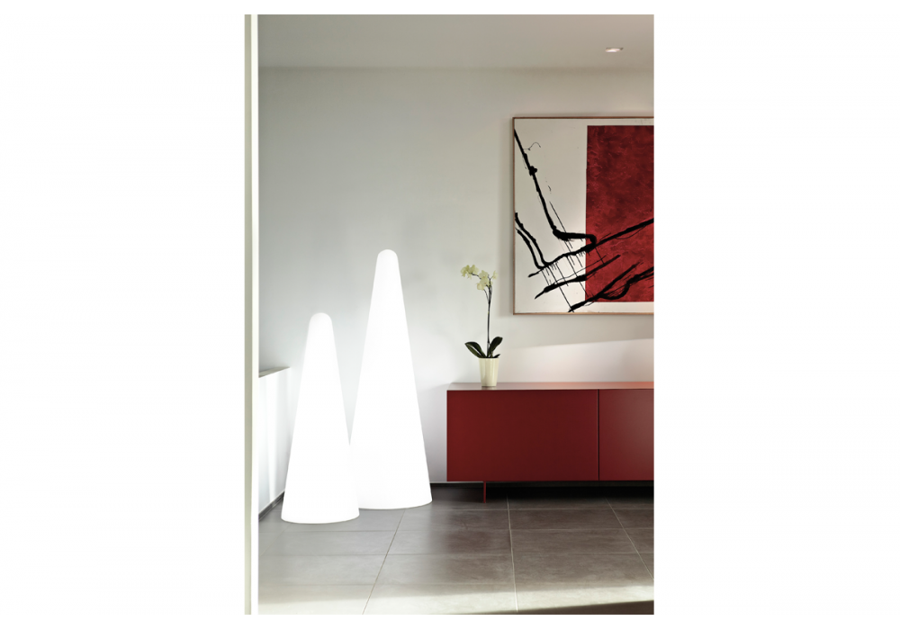 Cono designed by Slide Studio for Slide is a floor lamp with minimalist and essential lines that gives a dreamy and elegant atmosphere thanks to its light that delicately fades downwards and upwards. Available in different versions and sizes