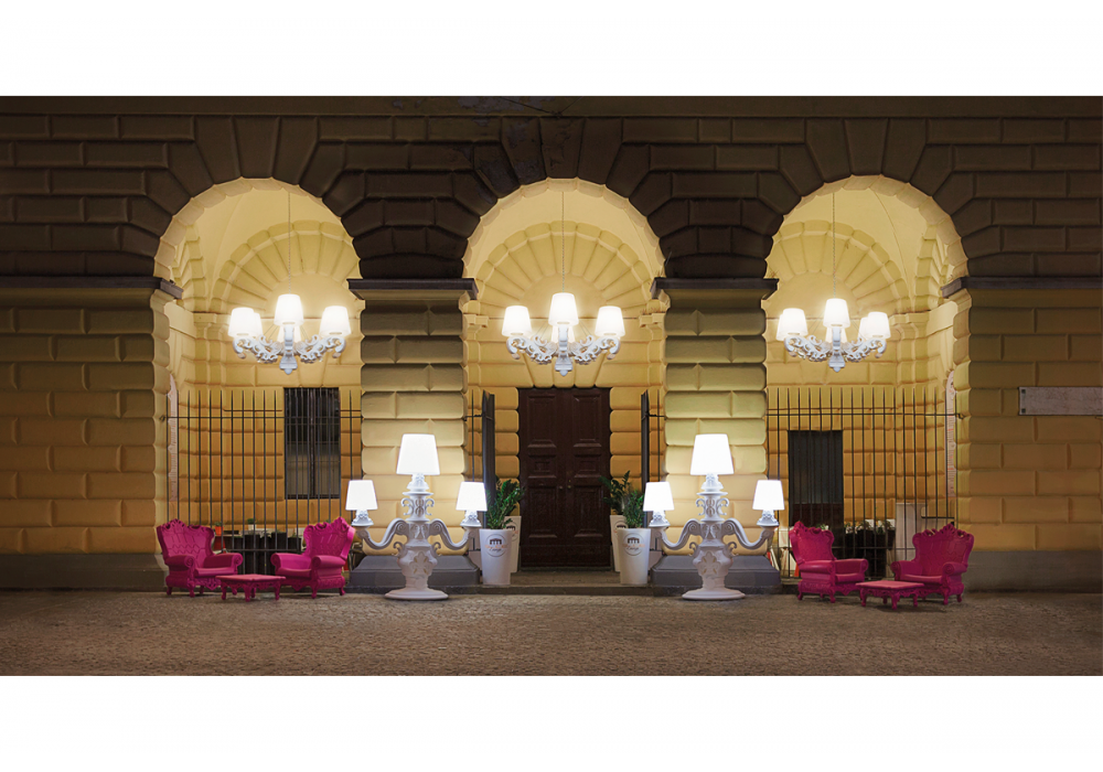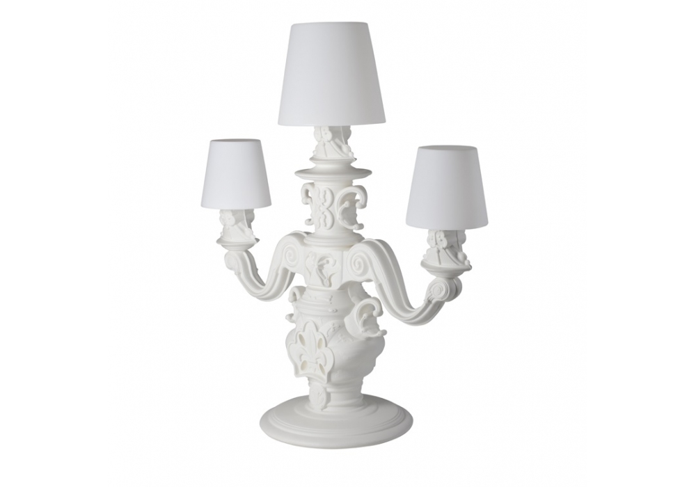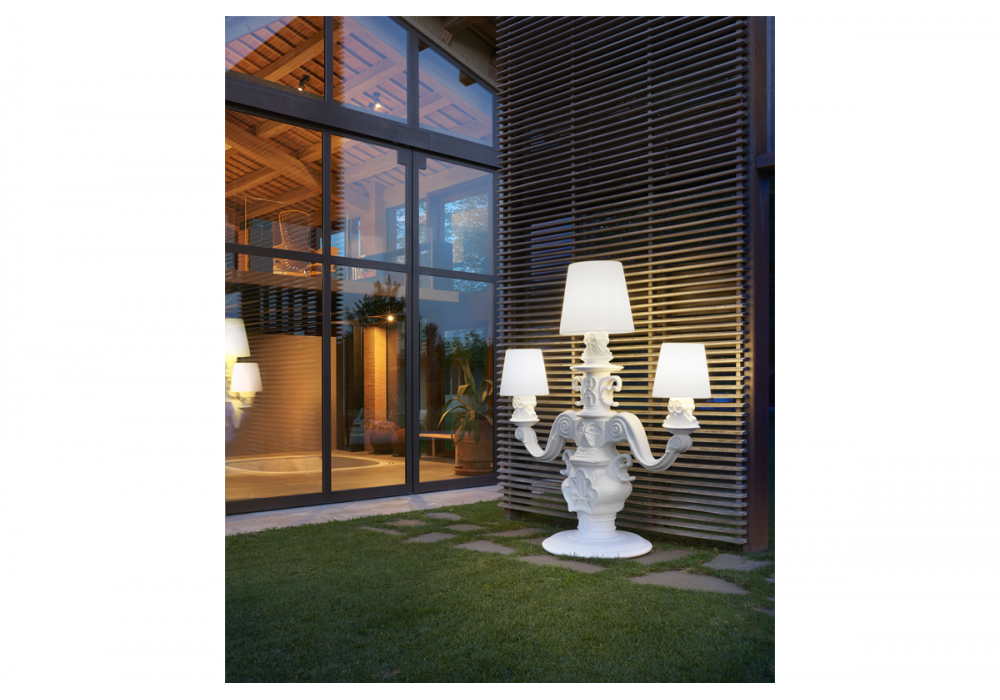 King of Love designed by Graziano Moro & Renato Pigatti is a floor lamp in Baroque style, while the three large bright white lampshades have a majestic dimension. Available in different finishes and in the LED battery version with RGBW module included