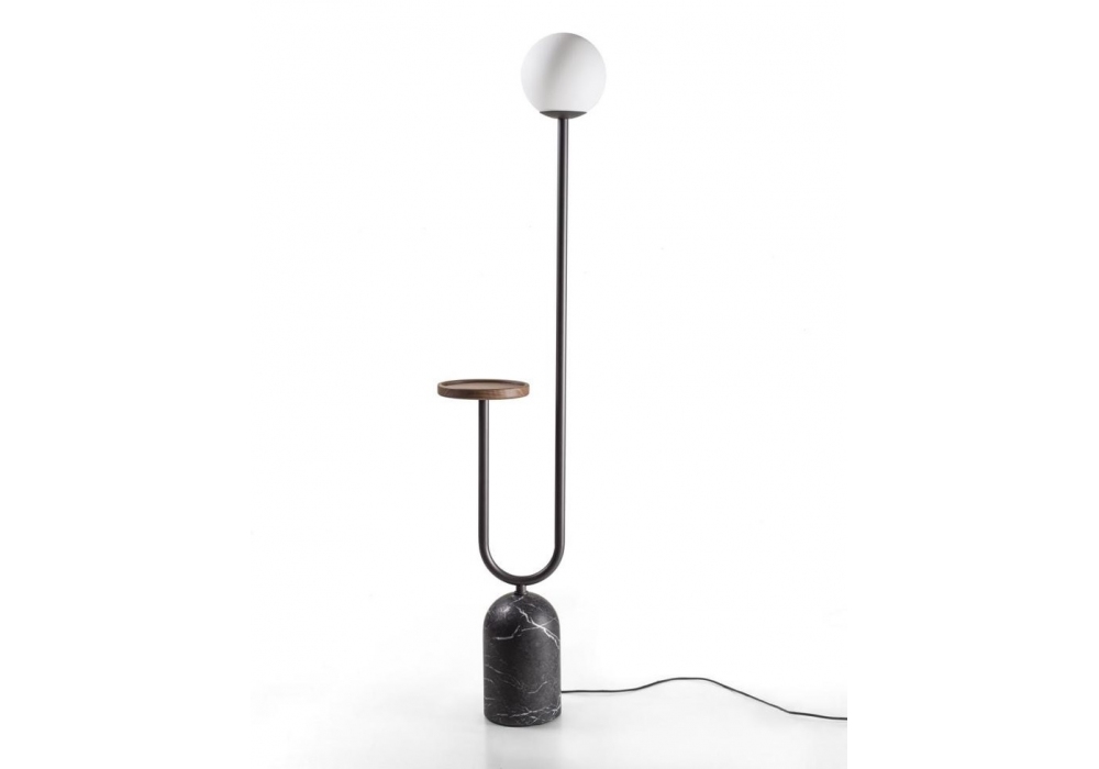 Ekero Totem designed by Tollgard & Castellani for Porada is a floor lamp with dimmable LED light, via remote control or APP. Cylindrical base in white Carrara or Carnico gray marble, structure in painted metal with pewter gray finish and white opal acid-etched glass diffuser. Pocket emptier in solid canaletta walnut.