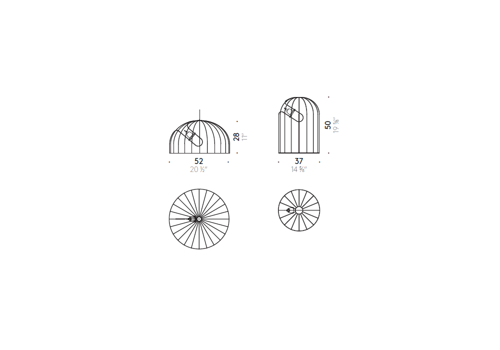 | Dimensions | - Ø37 x H 50 cm; - Ø 52 x H 28 cm. |