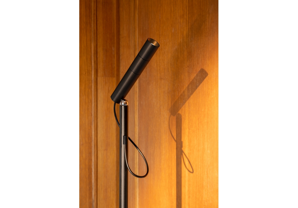 Type designed by Guillaume Bloget for Nemo is a floor lamp with circular base and tubular rod in matt black painted aluminum. The diffuser has a cylindrical shape that can be rotated 360 ° and adopts a LED spot light source.