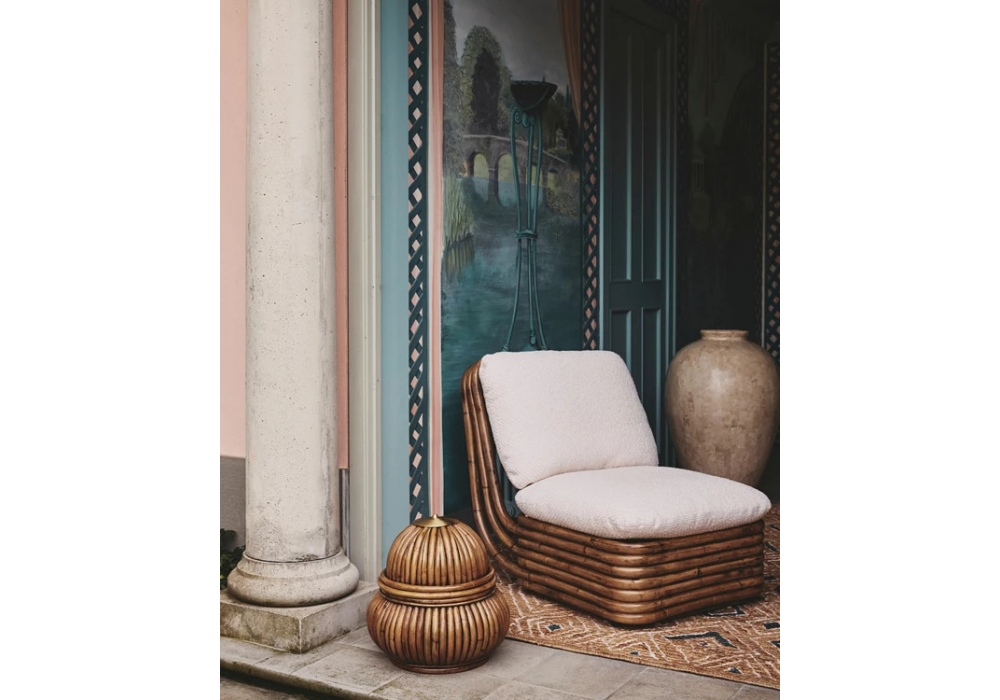 Bohemian 72 designed by Gabriella Crespi for Gubi is a floor lamp made of rattan.