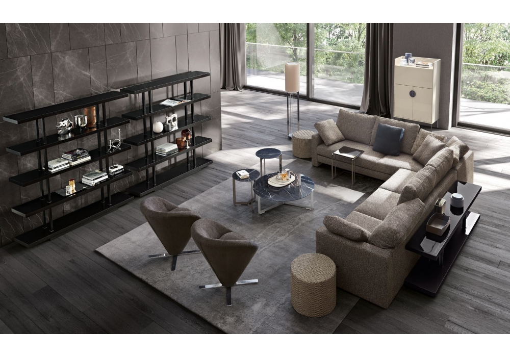 Toni designed by A. Bimbi for Dema is a floor lamp made with laser-cut metal structure complete with anti-slip in molded thermoplastic material. Base with marble support. Internal lampshade in linen canvas mounted on PVC and external in silk shantung. Available in different finishes.
