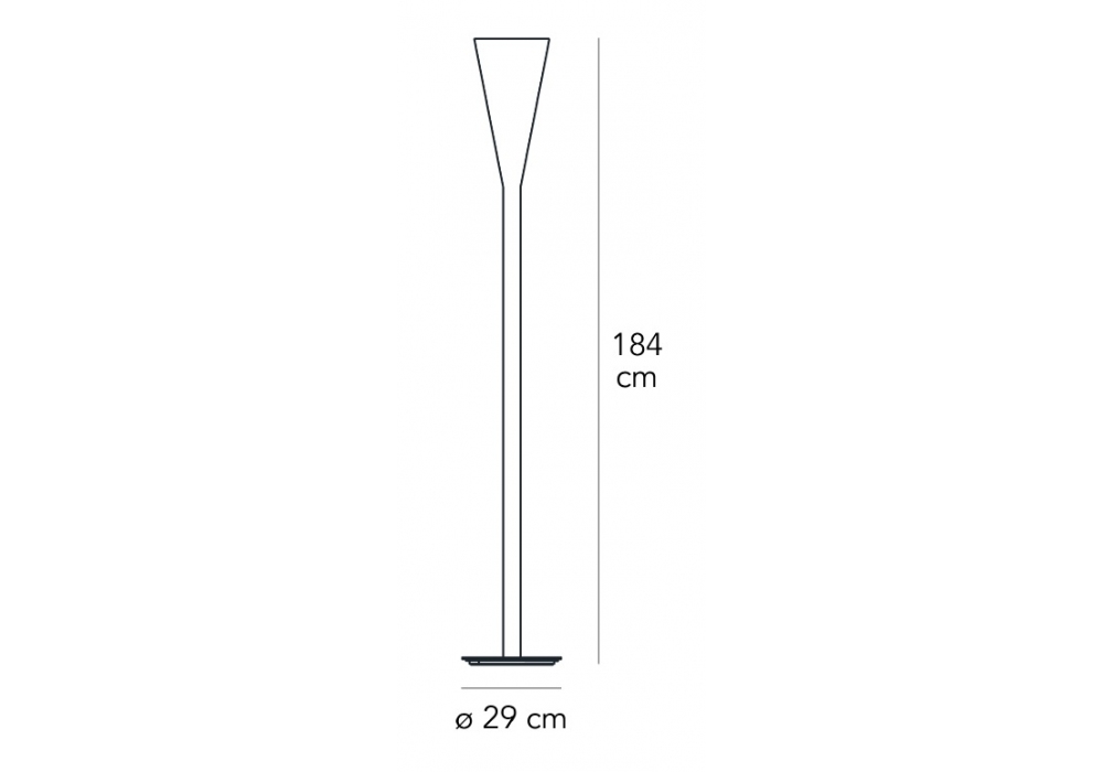 Riluminator designed by Pietro Chiesa for Fontana Arte is a floor lamp composed of a thin metal stem with a conical diffuser entirely painted in white. The light source adopted is of the integrated LED type.