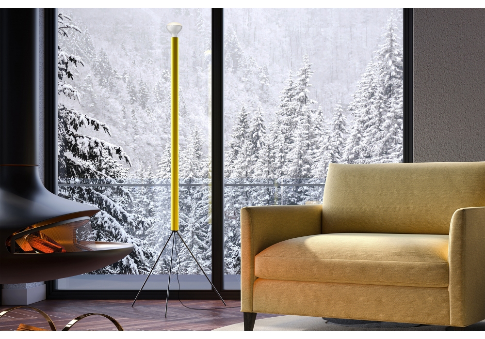 Luminator designed by Achille & Pier Giacomo Castiglioni for Flos is a floor lamp with indirect light. Bulb with reflector. Liquid painted iron stem. Liquid painted galvanized metal legs. Integrated switch (remotely adjustable). Bulb not included.