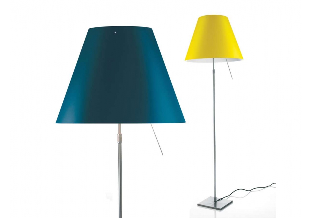 Costanza designed by Paolo Rizzatto for Luceplan is a floor lamp with aluminum stem, fixed or telescopic and interchangeable lampshade in screen-printed polycarbonate. Available in different finishes.