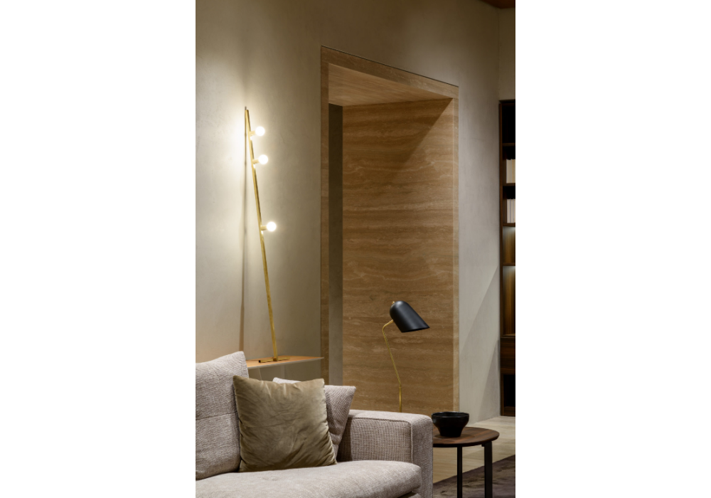 Dot 05 designed and produced by Lambert & Fils is a floor lamp with structure in brass and powder-coated steel and diffuser in milky white opal glass. Available in different finishes.