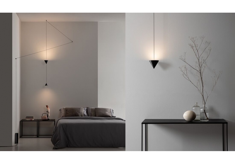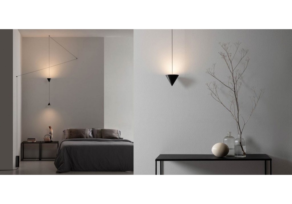 Filomena designed by Matteo Ugolini for Karman is a floor lamp with matt black aluminum structure and matt black metal base. Available in different models. Internal use.