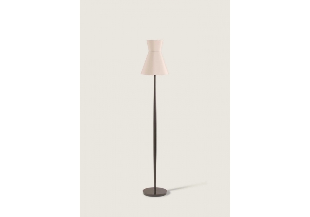 Daphne designed and produced by Porta Romana is a floor lamp with a structured circular base in painted wood. The lampshade is circular in shape in fabric and screens a light source with an E27 socket of the LED type. Daphne available in different structure and fabric finishes.