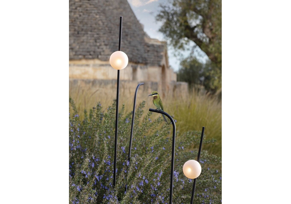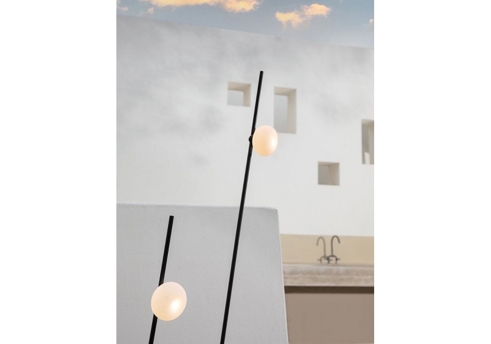Pois Outdoor designed by Matteo Ugolini for Karman is a floor lamp with matt black aluminum structure and white resin diffuser. Available in different sizes. External use.