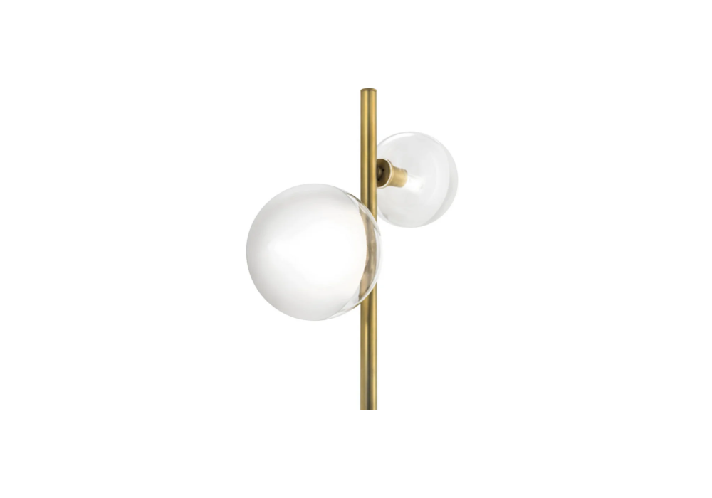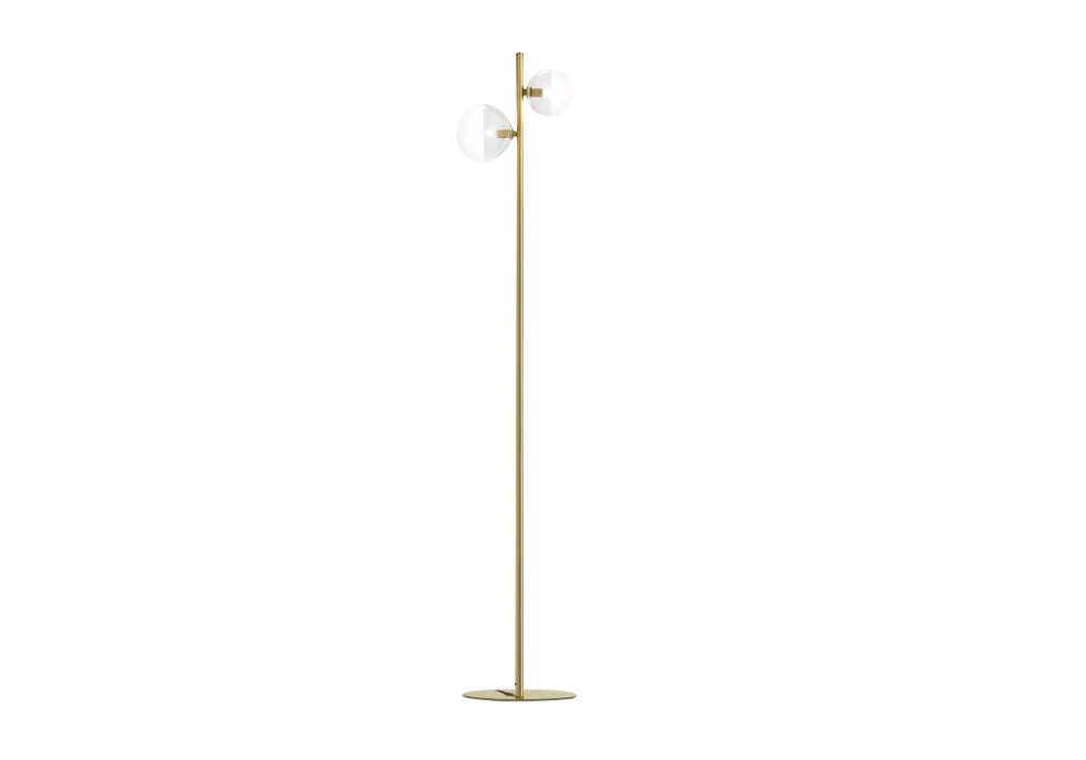 Molecola designed by Fabrizio Fava for Il Fanale is a floor lamp with circular base and vertical brass rod. The diffusers are spherical in shape and shield LED-type light sources. Molecule is available in different finishes.