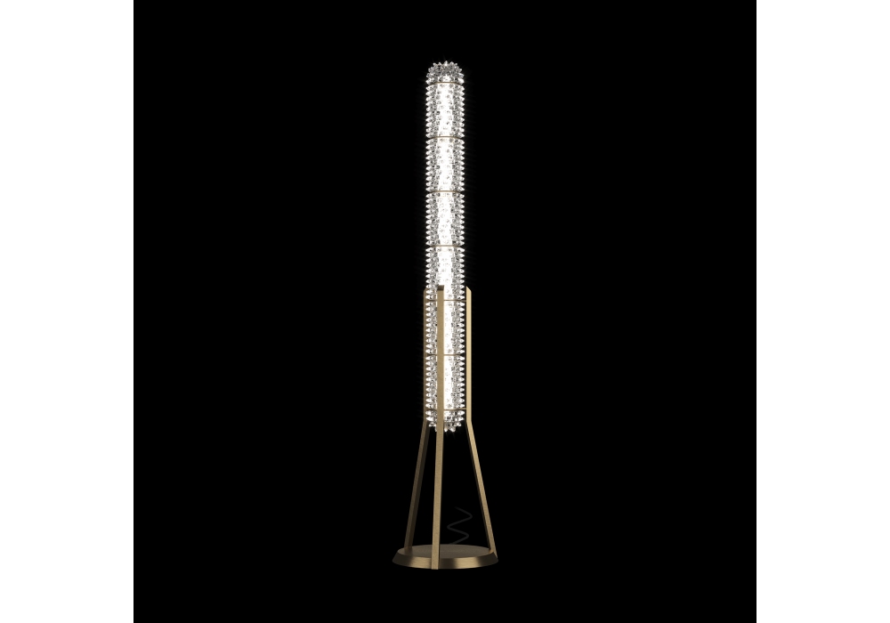 Opéra designed by Philippe Nigro for Barovier & Toso is a floor lamp with circular base and vertical structure in brushed black nickel or brushed gold colored metal. The cylindrical diffuser in Venetian crystal with a surface enriched by cusps screens a dimmable LED light source. Opéra is available in different structure finishes.