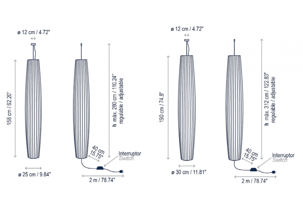 | Dimensions | Ø 25 x H 158 cm; Ø 25 x H 158 cm Hmax 280 cm; Ø 30 x H 190 cm; Ø 30 x H 190 cm Hmax 312 cm; |