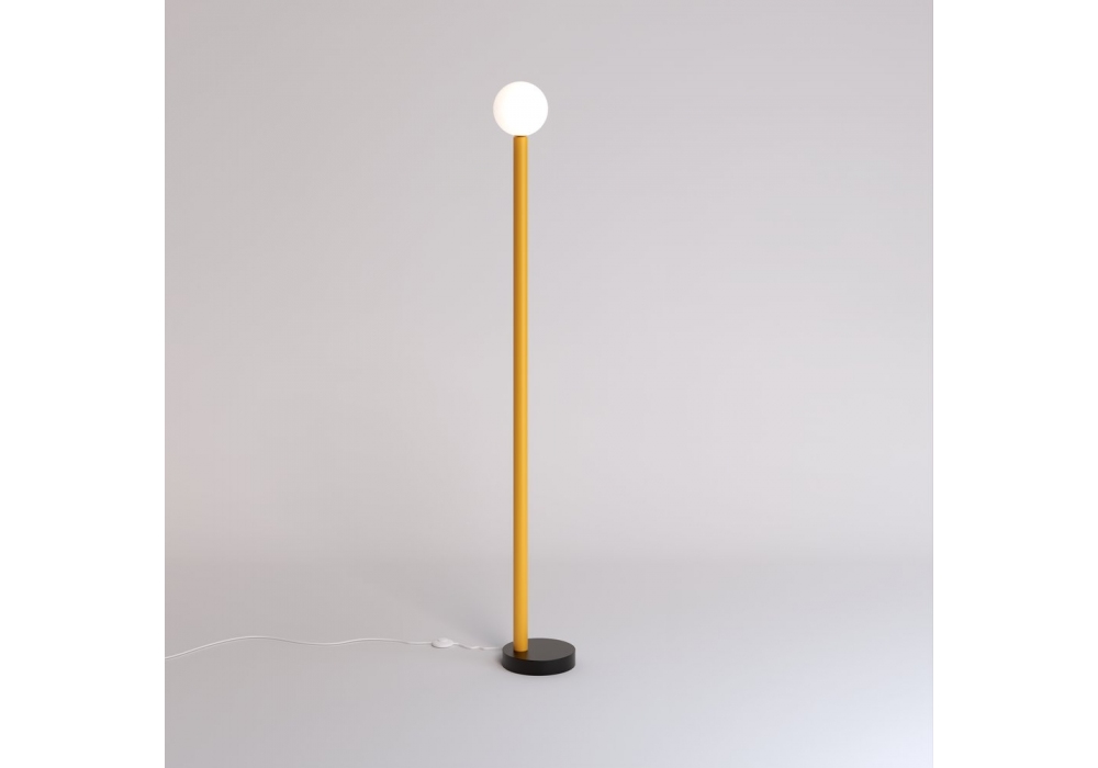 Off Center designed by Atelier Areti is a floor lamp made of painted metal, available in different finishes. Upon request, it is also possible to customize the colors of the tube and base.
