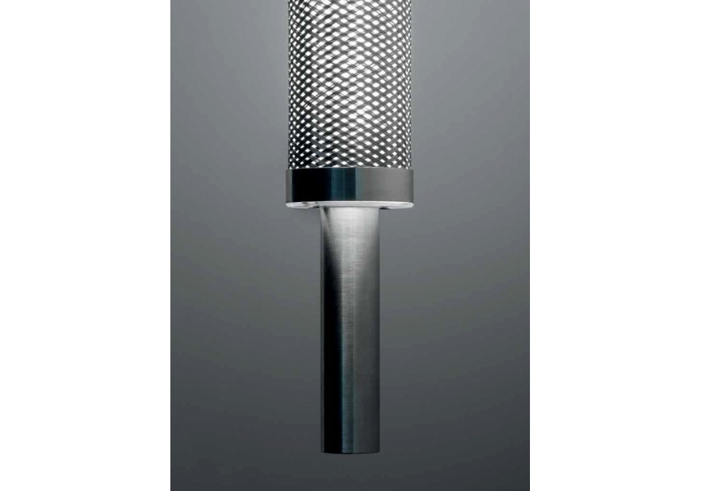 Kate designed by Benedetta Miralles Tagliabue for Firmamento Milano is a floor lamp with diffused and indirect light made with a painted steel stem, etched methacrylate diffuser and steel mesh.