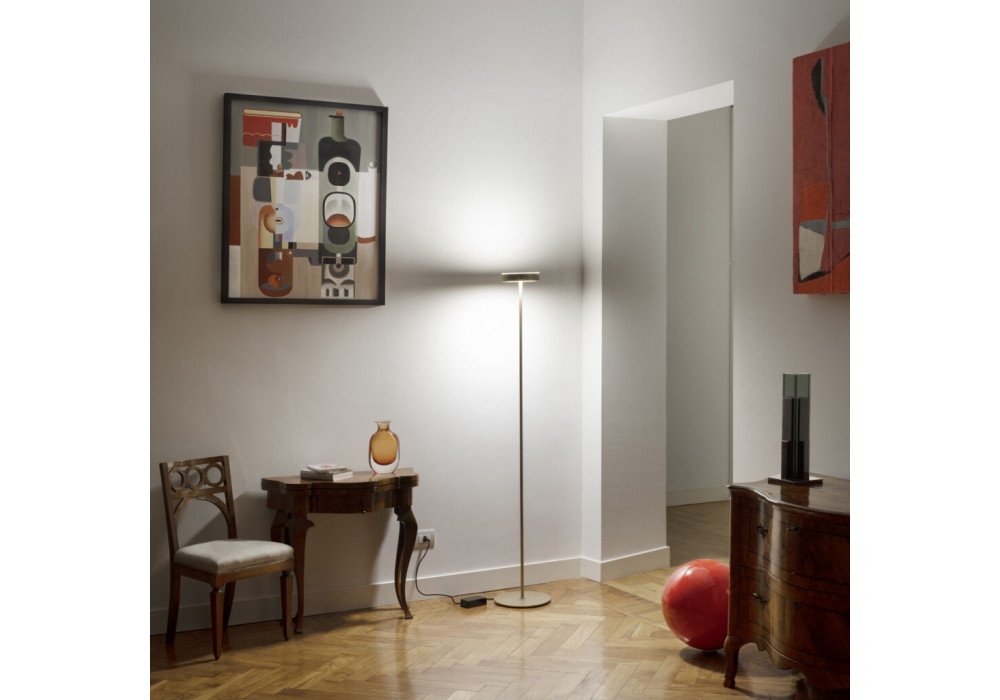 Tambù designed by Carlo Guglielmi for Firmamento Milano is a floor lamp with direct and indirect light made with a painted steel structure. Available in different finishes.