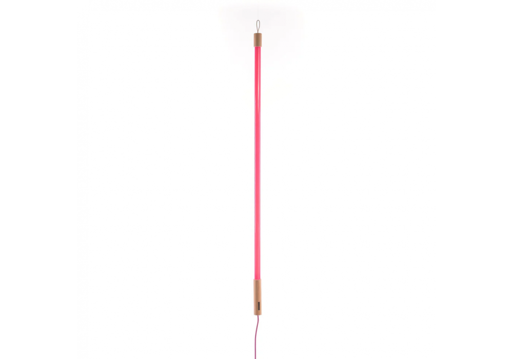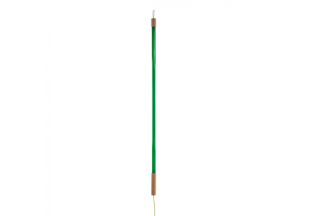 Linea designed by Selab & Alessandro Zambelli for Seletti is a floor lamp with support base and support handle in wood and metal. The diffuser is made of glass and shields an LED light source. Linea is available in different finishes.