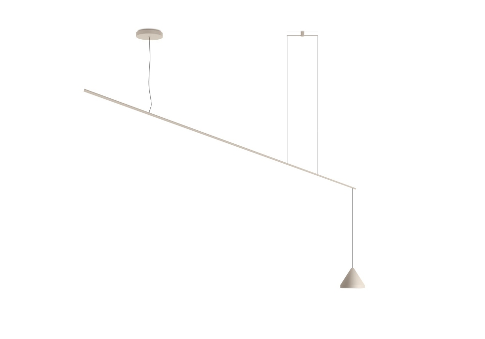 North Tubular designed by Arik Levy for Vibia is a pendant lamp with circular rosette and tubular rod in painted steel. The lampshade is made of conical aluminum with a methacrylate diffuser and shields an LED light source with a dimmable system. North Tubular is available in different models, finishes, light shades and dimmability.