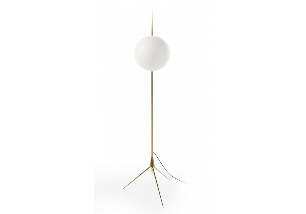 Ad-Astra designed by Marco Lavit for Living Divani is a floor lamp with a supporting structure in tubular brass obtained using a lathe. The diffuser has a spherical shape and is opaline white in color and shields an LED light source with a dimmable system on the power cable. Ad-Astra is available in different finishes.