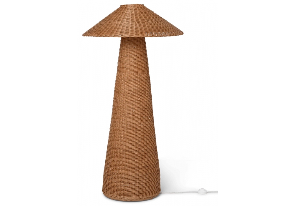 Dou designed by Ferm Living is a floor lamp made of braided natural rattan. Inside iron structure. This is a hand braided item, small variations in colour and shape may occur. This floor lamp features oversized dimensions and a soft, comfortable light, while the shade allows for small glimpses of illumination through the braided rattan, and will add texture and tactility to your living space.Only approved for EU/NO/CH/UK. Light bulb not included.