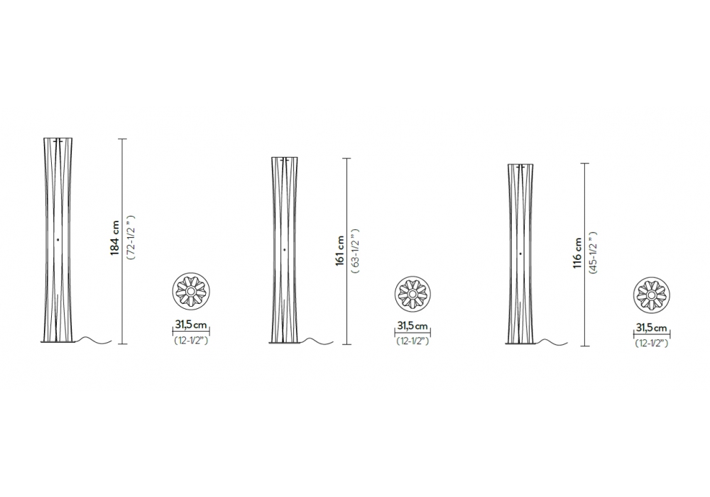 | Dimensions | • Ø 31,5 x H 161 cm; • Ø 31,5 x H 184 cm |