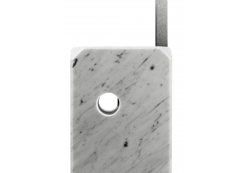 Arco LED designed by Achille & Pier Giacomo Castiglioni for Flos is a floor lamp with direct light. White Carrara marble base. Telescopic stem in satin stainless steel. Adjustable and height-adjustable reflector in stamped, polished and zapon aluminium. Remote switch included. Multichip LED light source included.