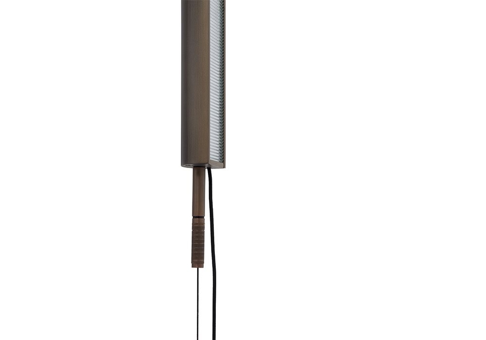 Cut Back Up&Down designed by David Lopez Quincoces for DePadova is a floor-ceiling lamp adjustable in height, with an adjustable light source for flexible and precise lighting. Structure and base in satin bronze painted aluminum, diffuser in transparent ribbed glass. Power supply and control integrated in the kit (output 24V), with on/off control on the power cable.