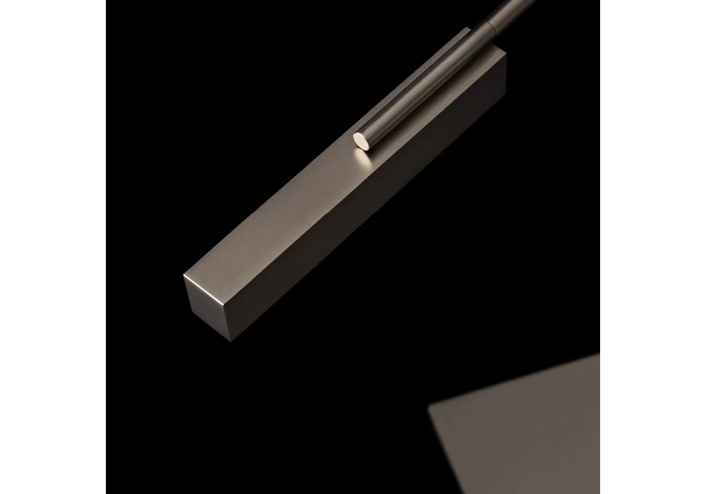 Arthur designed by Studioutte for Poliform is a floor lamp in satin stainless steel with anti-fingerprint protection, base covered in felt on the lower part. Dimmable 2700K LED light. 360° rotatable structure and adjustable source body.