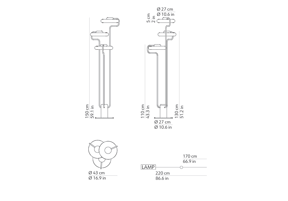 Tratto signed by Oliver Schick for Kundalini is a dimmable floor lamp that consists of three opal glass diffusers. The structure is in matt or satin painted metal.