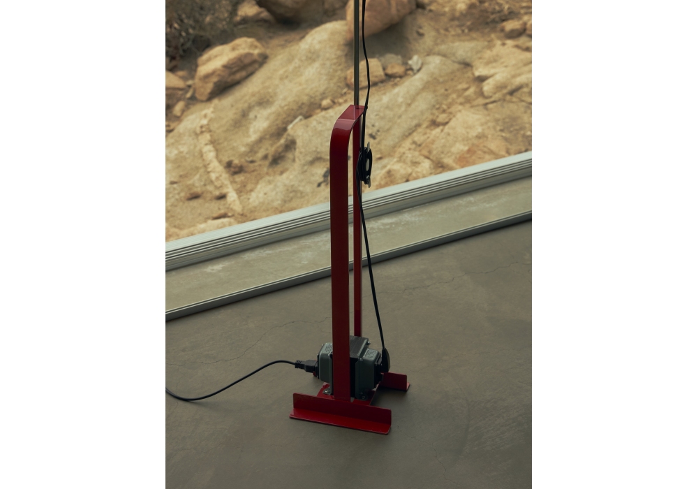Toio designed by Achille & Pier Giacomo Castiglioni for Flos is a floor lamp providing indirect light. Base in cut and folded steel and structure in steel profiles, both liquid painted, in various colors. Stem with hexagonal section in nickel-plated brass. The telescopic movement of the rod allows the height of the device to be adjusted. The electronic dimmer on the cable allows the step adjustment of the light intensity. LED light source included.