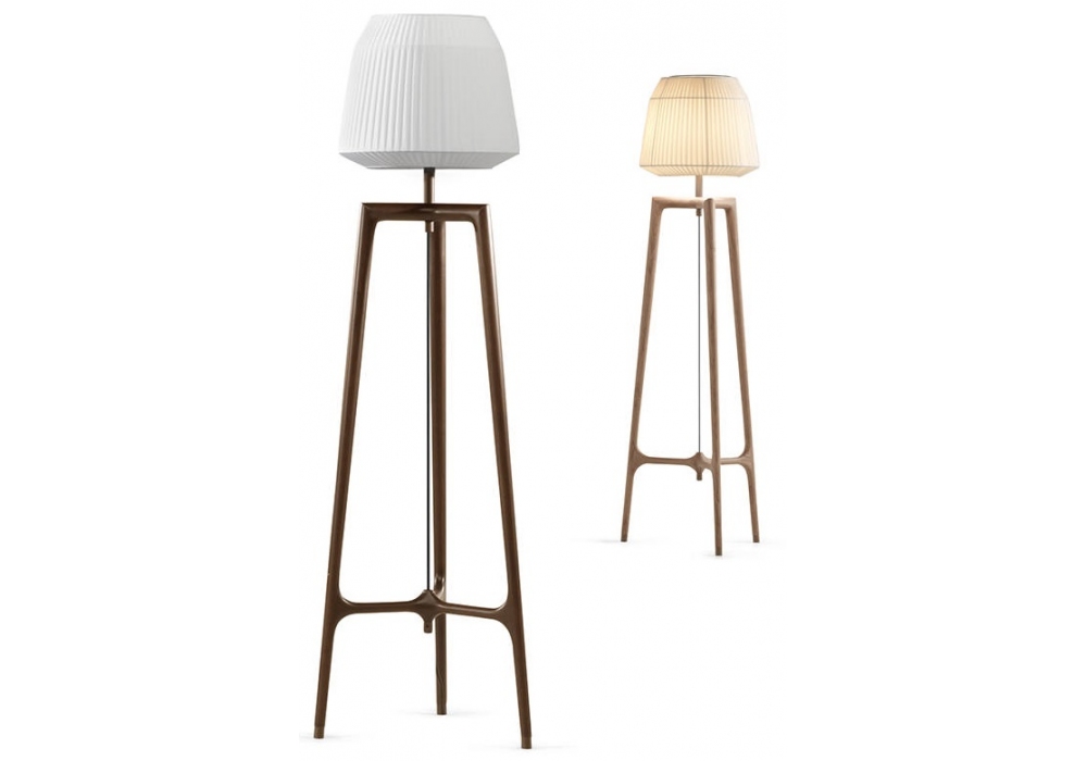 Lampo di Ceccotti Collezioni is a floor lamp made in solid American walnut, shade in fabric and leg tips in brass.