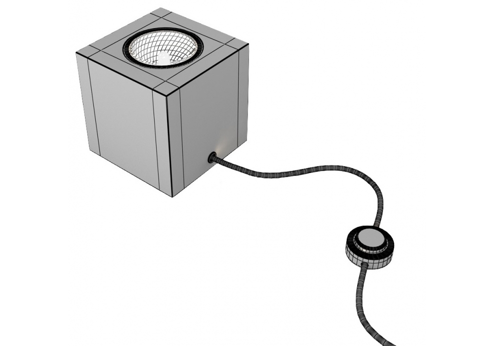 Q designed by Alberto Zattin for Davide Groppi is a floor lamp with cubic concrete structure and recessed metal spotlight. The light source adopted is with a GU10 LED type socket powered by an orange cable.