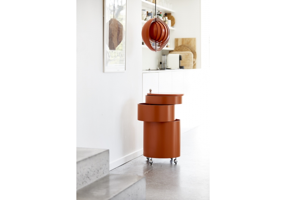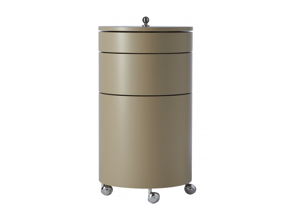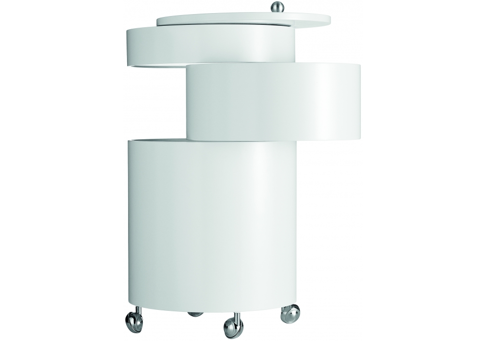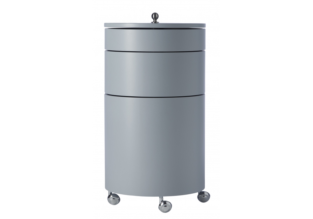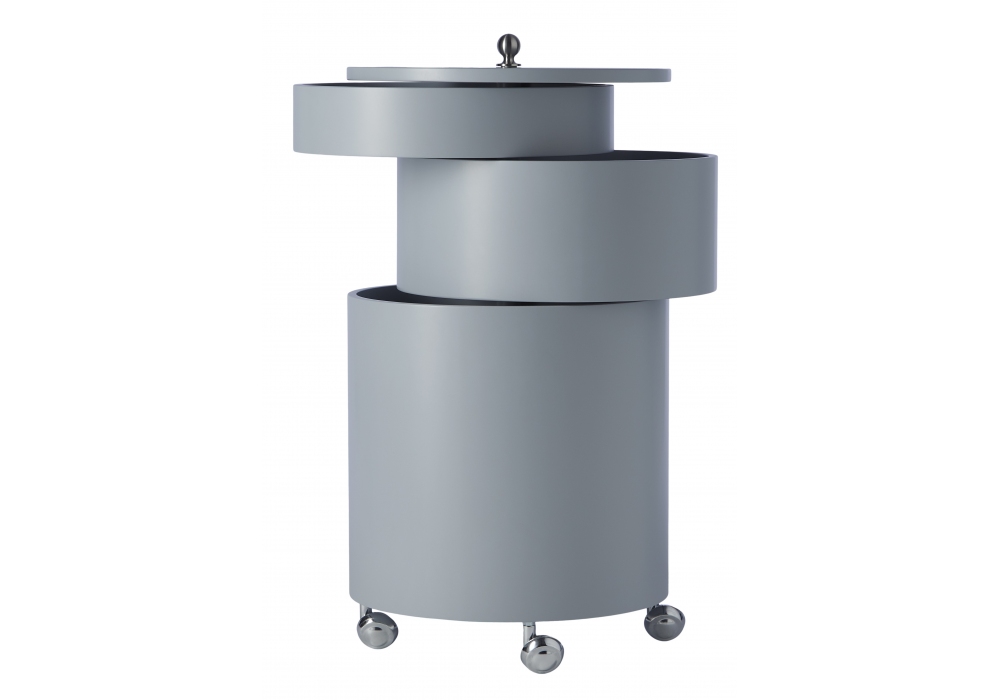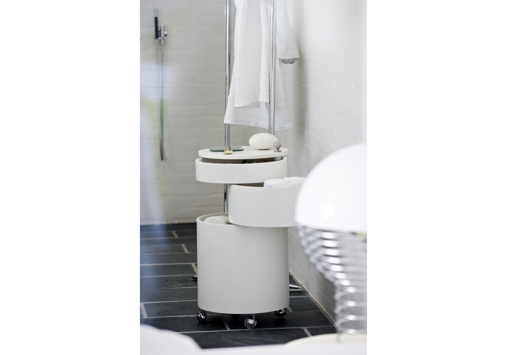 Barboy designed by Verner Panton for Verpan is a trolley composed of three fully extractable round-shaped drawers. Made of molded painted wood with decorative chrome casters for limited movement or plastic for smoother movement.