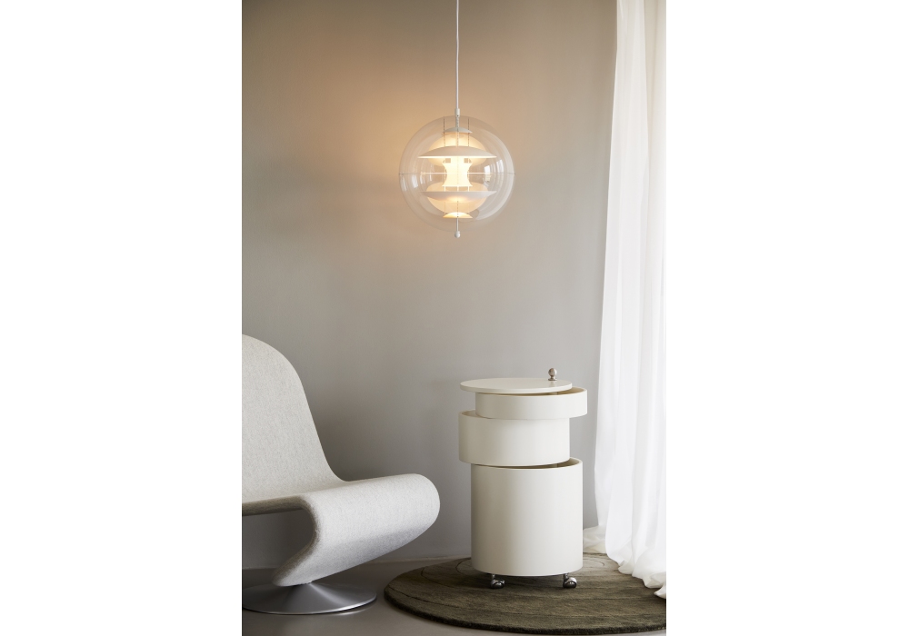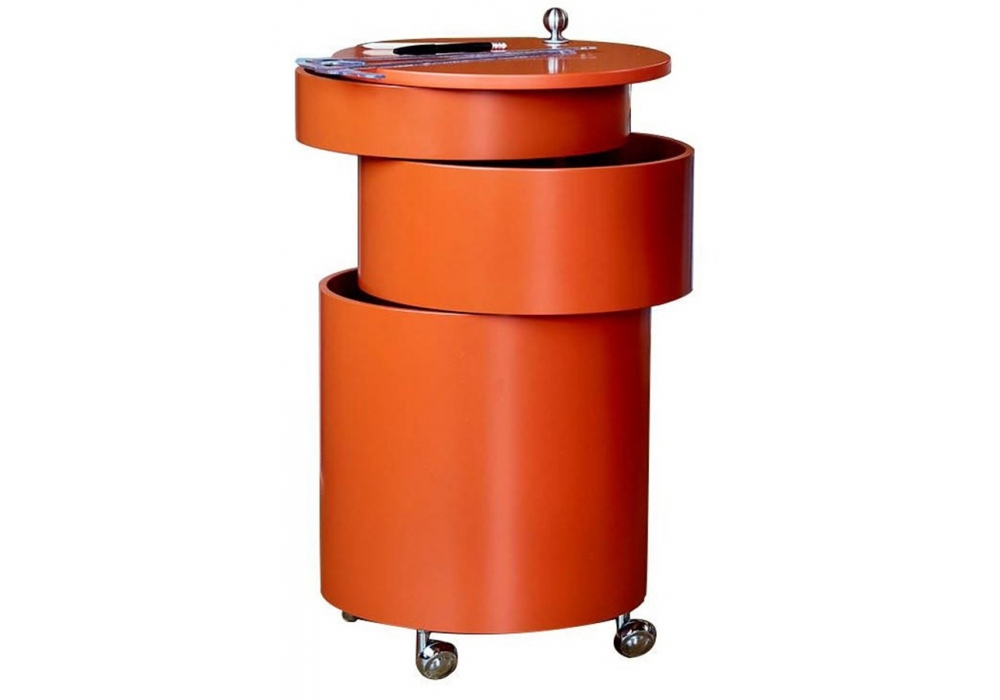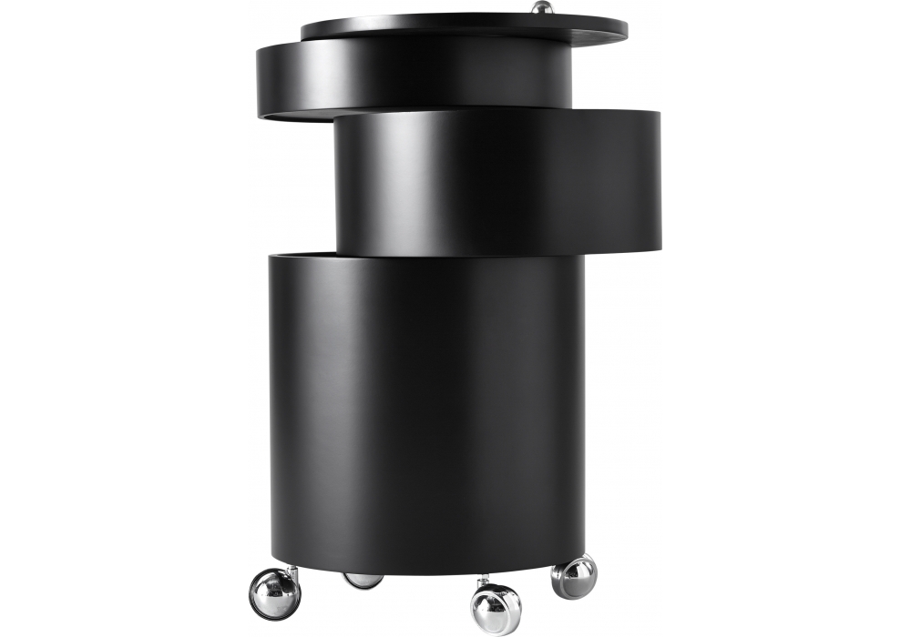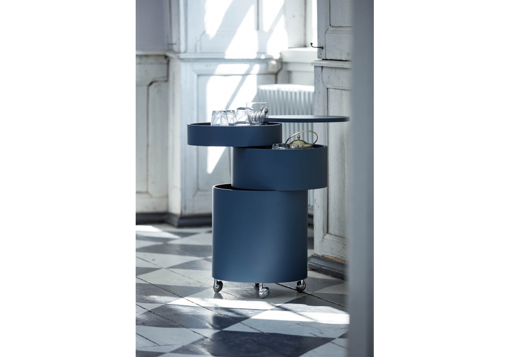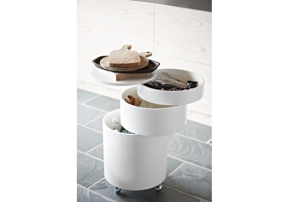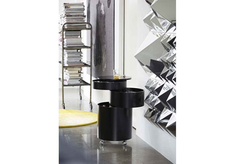 Barboy designed by Verner Panton for Verpan is a trolley composed of three fully extractable round-shaped drawers. Made of molded painted wood with decorative chrome casters for limited movement or plastic for smoother movement.