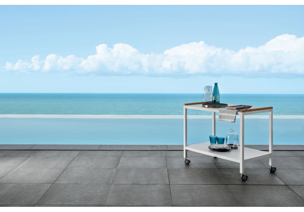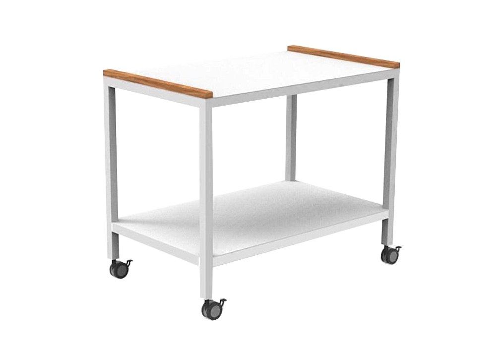 Cart of the Accessories collection of Talenti is a trolley with aluminum structure painted in white or graphite. Top with teak inserts.
